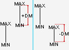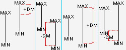 Il (+DM) e il (-DM) non sono altro che l’accostamento di due barre che vengono calcolate confrontando il range del giorno con quello del giorno precedente. Praticamente è il raffronto tra i massimi e minimi di due barre consecutive.